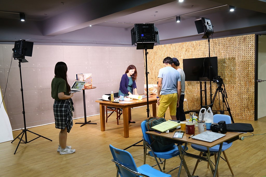 約訪那天下午,剛好碰到一位從英國回來的老師教怎麼做手工立體書,Arnold 在攝影棚外輕聲向我們簡介,同時帶我們逛了一圈辦公室,這一來一往,看了攝影棚設備、看了辦公室人數,好奇更大了。本來要先問創辦緣由以及為什麼會想到先募資才開課,不過實在忍不住,臨時變更順位,先問了營運狀況。