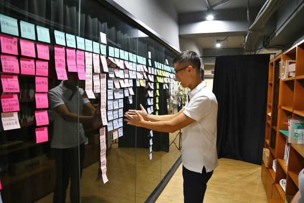 這種風氣最直接的展現,就在攝影棚邊、要進入辦公區的便利貼牆,上面貼滿了各色分類貼紙,Arnold 說,用意是把公司所有的功能和面向列出來,因為「討論問題發想的時候,很容易陷在某個面向裡面,會覺得這邊有問題那邊有問題,但是其實公司資源有限、人力有限情況下,你要做最通盤的問題檢視跟決策。」他舉例,紅色代表老師、藍色代表 Hahow、黃色代表學生,將每個行為動作建立起來,可以明確知道哪個環節要優化,哪裡又要新增或汰換。此外,網站功能很多,有些地方會被遺漏,還有提醒的效果。