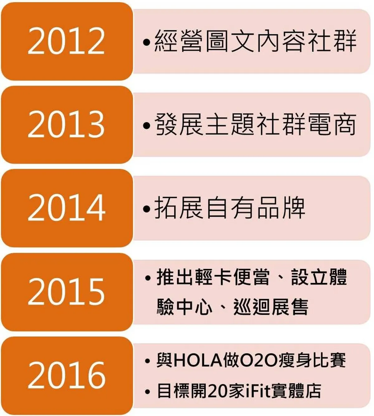 童:我覺得 iFit 的品牌定位非常好,跟 HOLA 的定位接近,我們有自有品牌「樂健美」,跟 iFit 的價值相當貼切,所以我們相當支持們。最近他們推出 O2O 瘦身比賽,企業之間能合作是很美的事情,因為企業要靠自己面對環境的變化往往很困難。