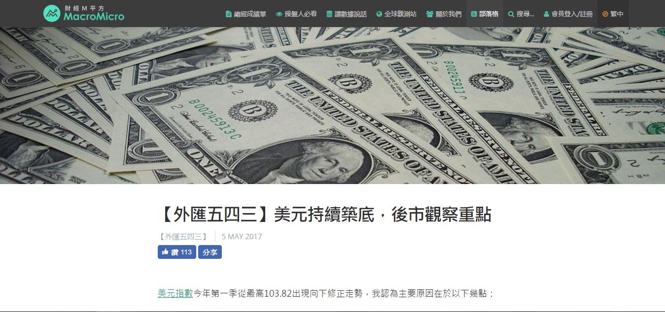 部落格有外匯走勢等深度分析。擷取自財經 M 平方網站