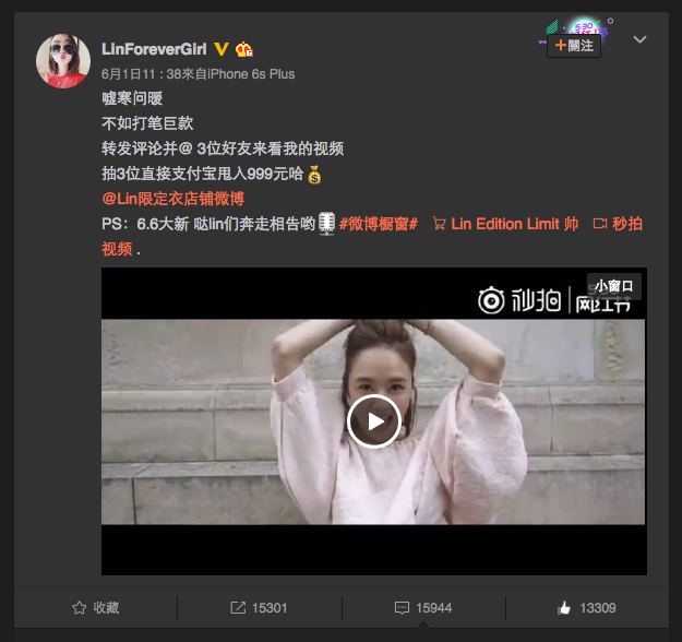 圖說:當有新品將推出,Lin 會在微博中發文發影片預告(圖片來源:截自 Lin 微博貼文)