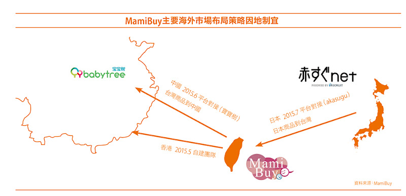 主打媽媽社群的 MamiBuy 有 45 萬會員,號稱最多媽媽分享的平台,累積至今平台上已有問答數達 10 萬篇,300 多家母嬰廠商及 1 千多個母嬰品牌。在台灣站穩腳步後,2015 年積極布局日本、中國、香港及印尼市場,夢想要做亞洲華人媽媽社群,MamiBuy 創辦人雍承書如何選擇想發展的海外市場?又以什麼方式進入市場呢?